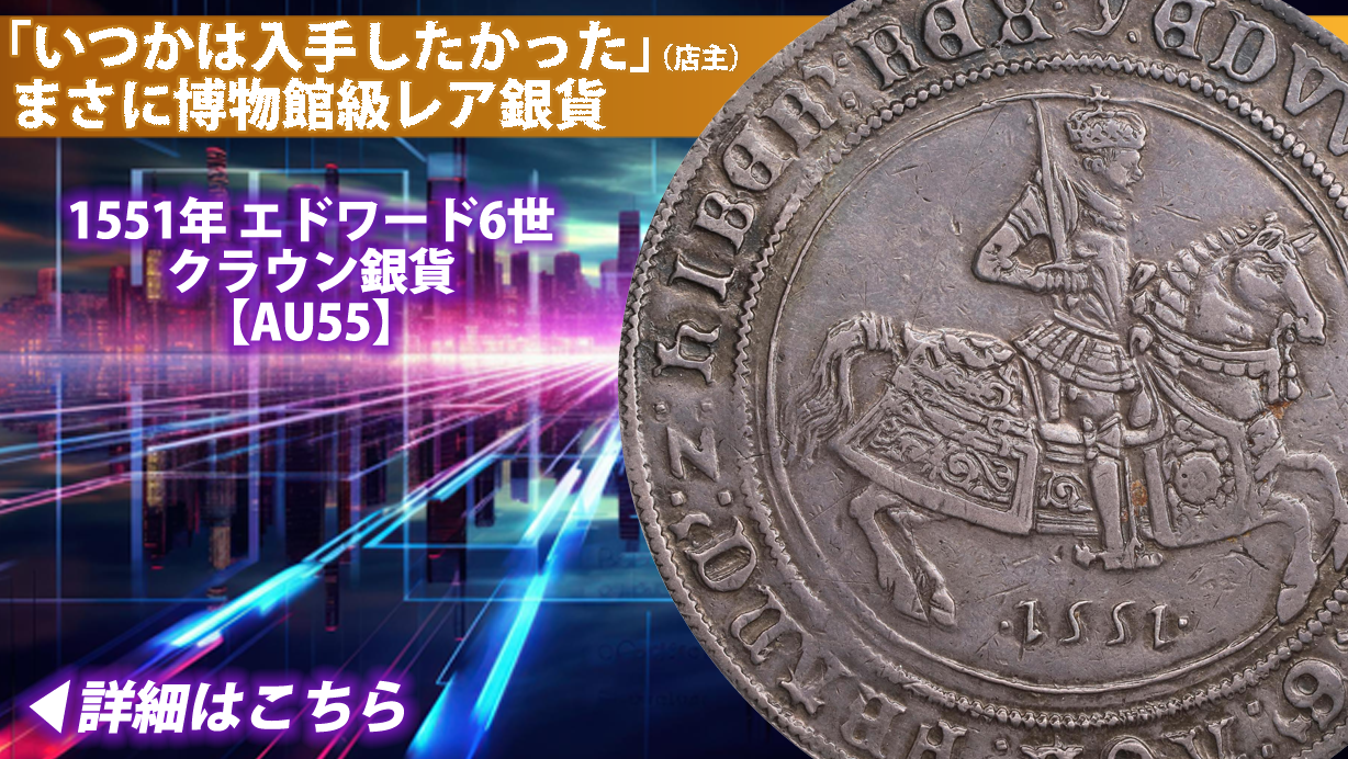 - ◆ 新コイン追加|1551年 イギリス エドワード6世 クラウン銀貨【AU55】2025年10月09日本日公開の新コインは 1551年 イギリス エドワード6世 クラウン銀貨【AU55】 約500年前に発行されたイギリス初の大型銀貨!残存数が少なく、今回のよ...続きを読む