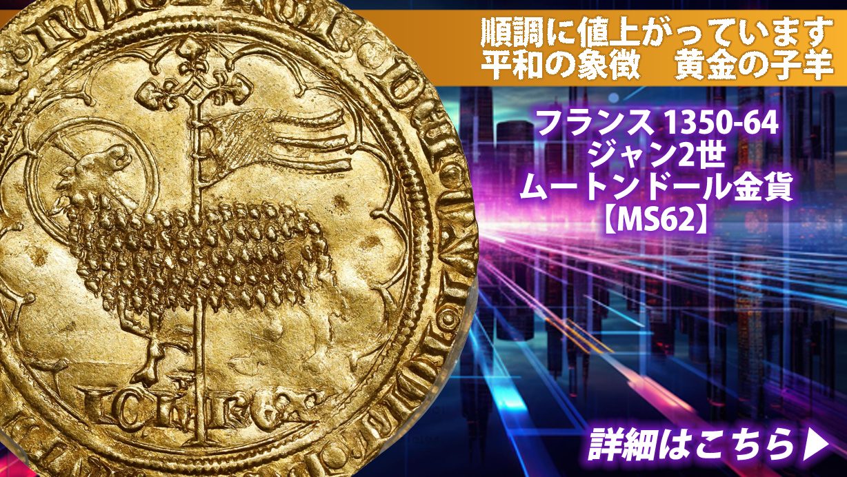 2026年02月05日本日公開の新コインは フランス|1350-64 ジャン2世 ムートンドール金貨【MS62】 こちらも順調に伸びている約700年前の黄金の羊コインです。...続きを読む - ◆ 新コイン追加|フランツヨーゼフ1世 4ダカット金貨オリジナルMS61