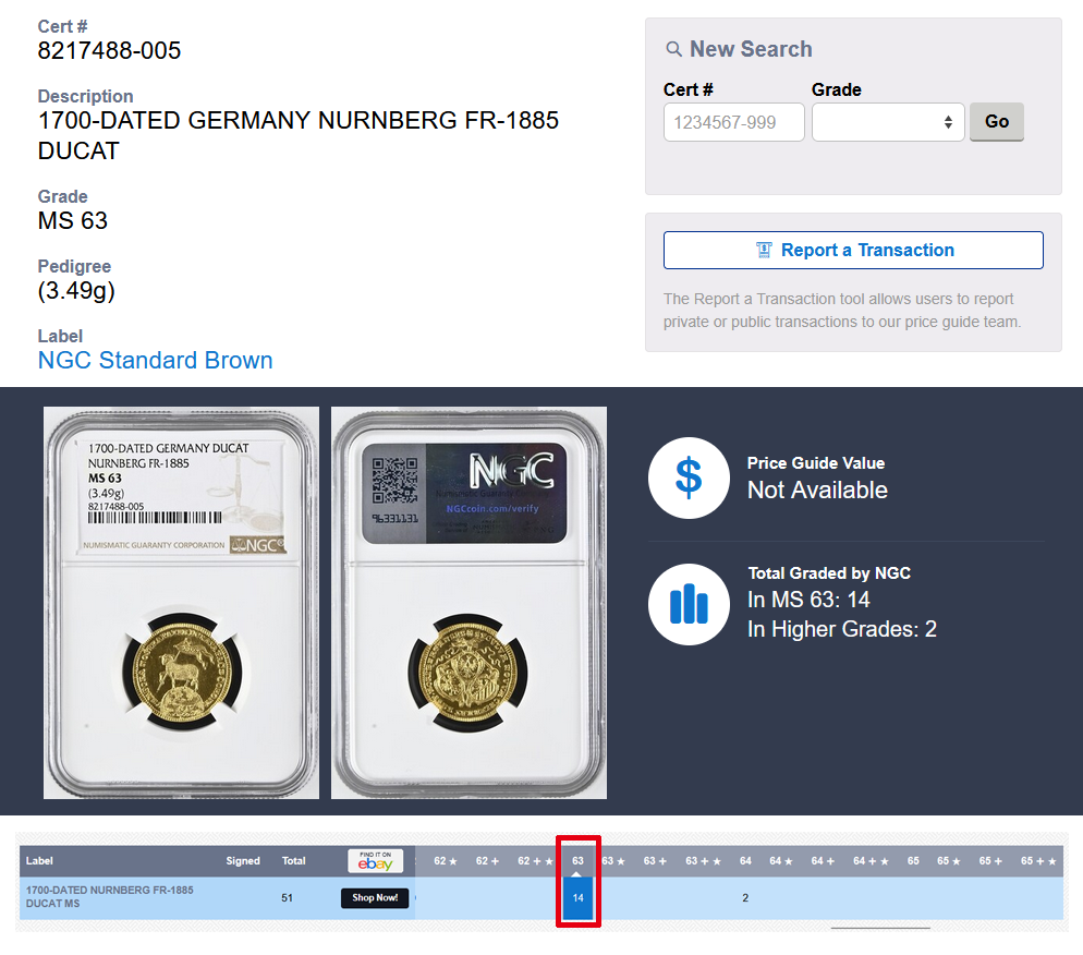 NGCでMS63は10枚で準最高鑑定となっています(上位にMS64が4枚)