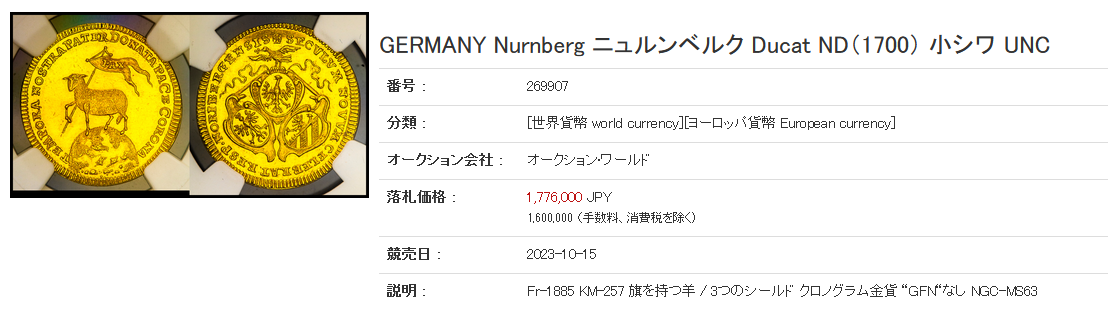 ※今回の金貨は「GFN(当時のニュルンベルク造幣局長Georg Friedrich Nürnbergerのイニシャル)が極印されていないバージョンです。