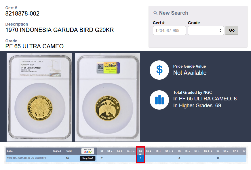 NGCで同グレードの鑑定枚数は 8枚 となっております。