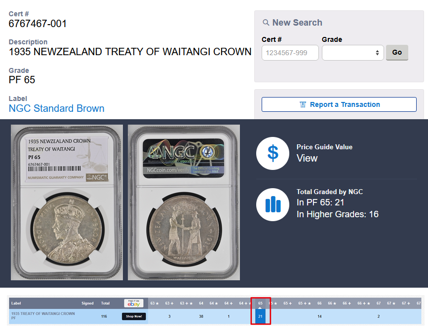 NGCでPF65は21枚、上位にはPF66が14枚、PF67が2枚ございます。