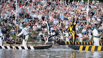しかし、ドイツ語では「Fischerstechen(フィッシャーシュテッヘン)」 と呼ばれる伝統的な水上の槍(またはランス)競技・見世物で、翼を身に着けた対戦相手を船上から水面に突き落として勝敗を決める競技です。