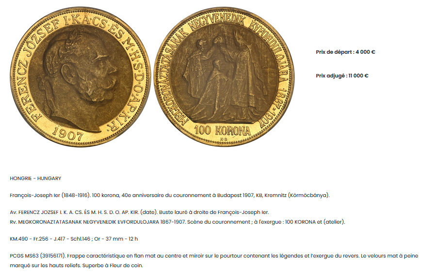 オーストリア|1907年フランツ・ヨーゼフ1世戴冠40周年100コロナ金貨【MS63】のご案内になります。