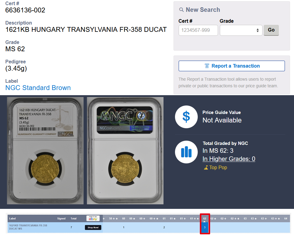 NGCでの総鑑定枚数は7枚、MS62は最高鑑定で3枚存在します。