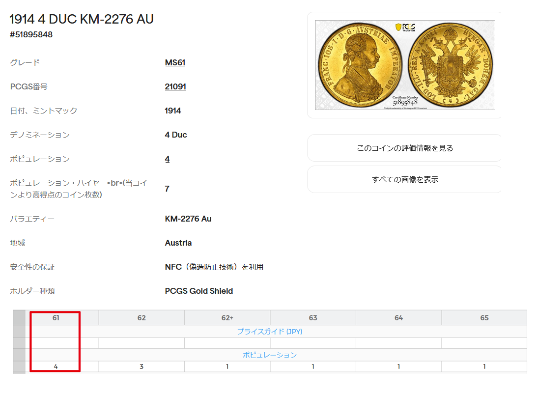 鑑定番号(PCGS)51895848