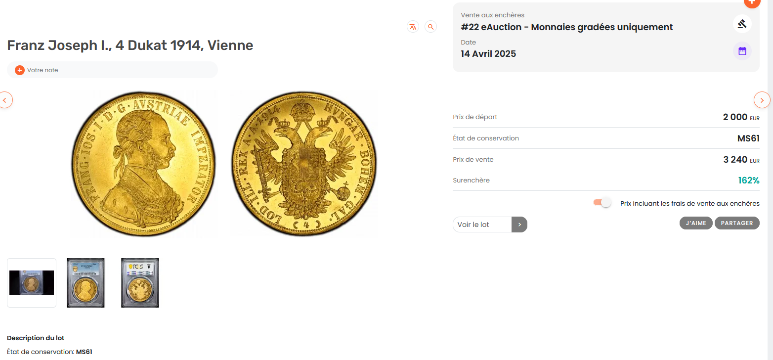 こちらのレコードはご案内中のコインが実際に2025年のオークションで落札された時のデータとなっております。
