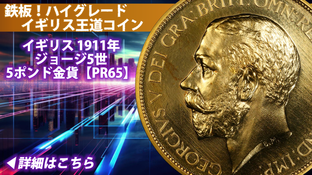 2025年10月23日本日公開の新コインは イギリス|1911年 ジョージ5世 5ポンド金貨【PR65】 将来の伸び代にも期待でき、安心して保有できる英国コインの王道中の王道にな...続きを読む - ◆ レコード更新|1999年ダイアナ追悼記念5ポンド金貨【PF70UC】