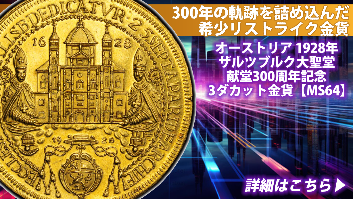 2026年03月14日本日公開の新コインは オーストリア 1928年 ザルツブルク大聖堂献堂300周年記念 3ダカット金貨【MS64】 このデザインのコインを1枚は持っておきたい...続きを読む- ◆ 新コイン追加|1888年バンクポルトガレッサー金メダルMS65PL