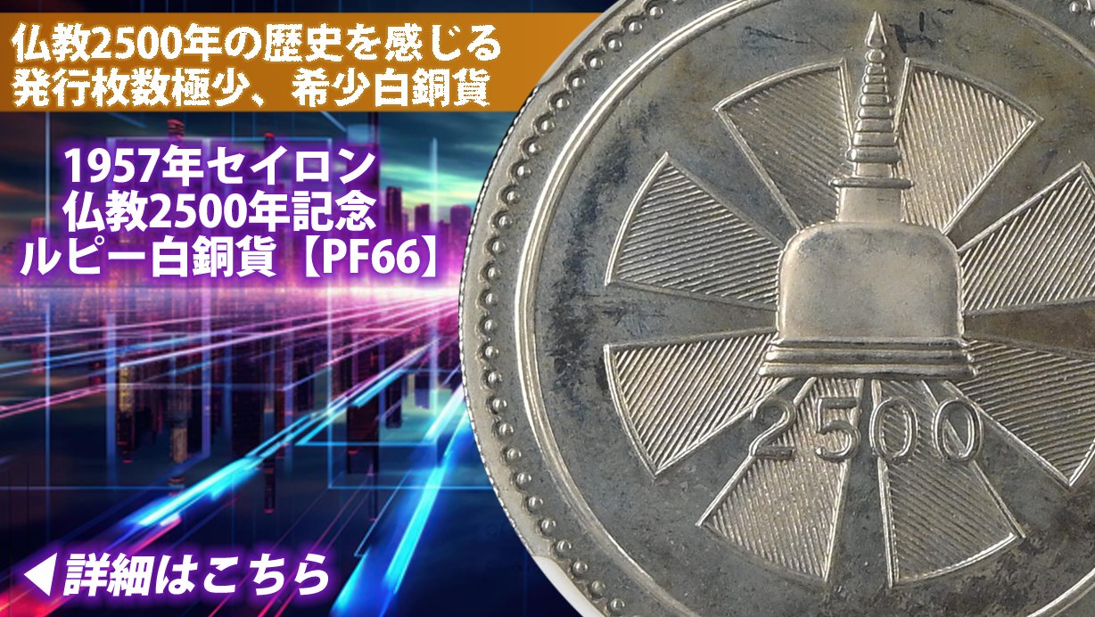 - ◆ 新コイン追加|1957年セイロン 仏教2500年記念ルピー白銅貨【PF66】