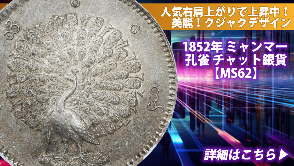 ◆ 新コイン追加|1852年 ミャンマー 孔雀 チャット銀貨【MS62】