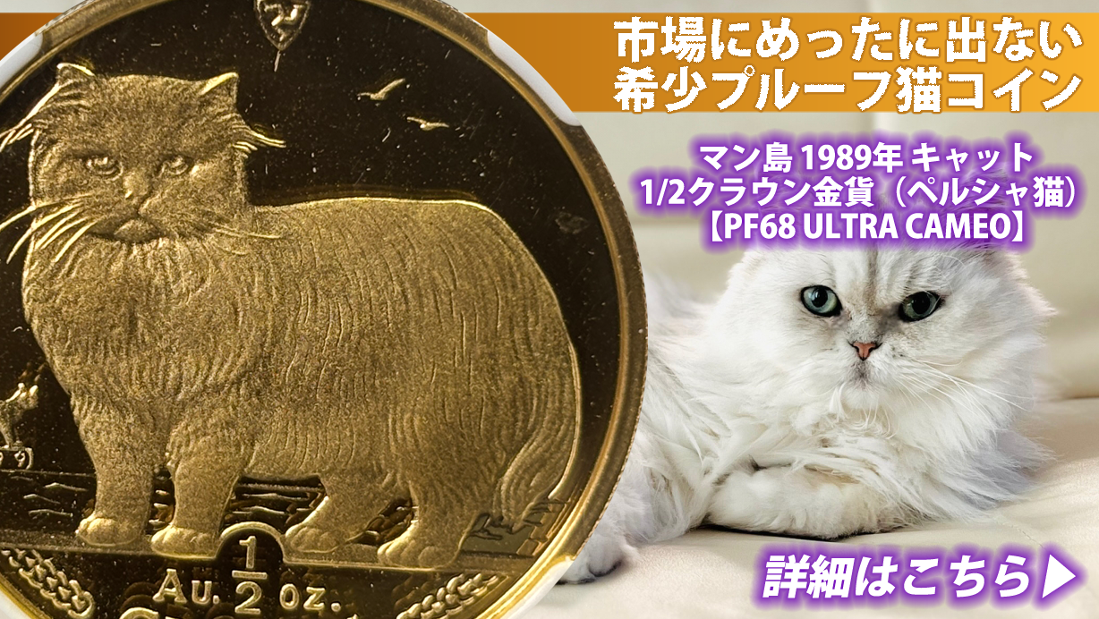 2026年04月11日マン島 1989年 キャット 1/2クラウン金貨(ペルシャ猫)【PF68 ULTRA CAMEO】 猫モチーフのかわいらしいデザインゆえに多くはアクセアアリー...続きを読む- ◆ レコード更新|雲上の女神【PF61】