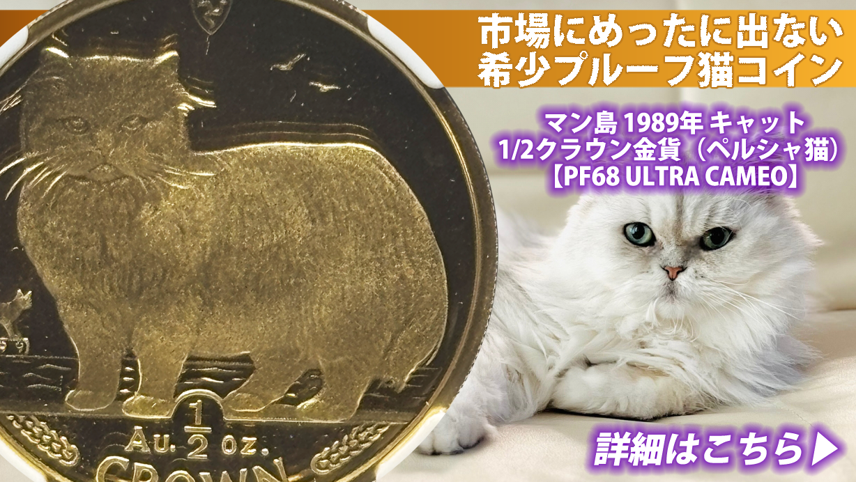 ◆ 新コイン追加|マン島1989年キャット1/2クラウン金貨ペルシャ猫PF68UC