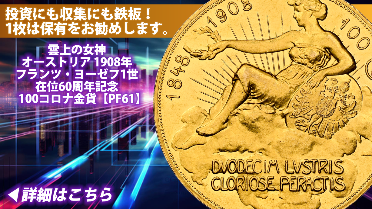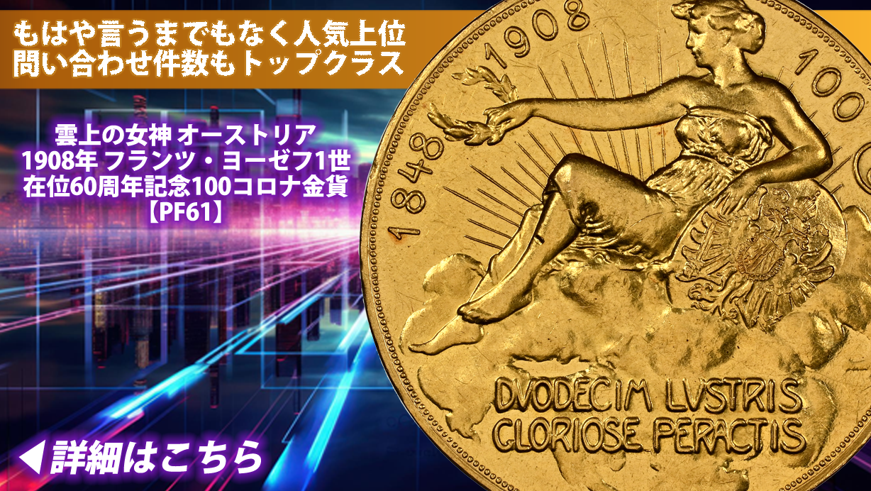 雲上の女神|オーストリア 1908年 フランツ・ヨーゼフ1世在位60周年記念100コロナ金貨【PF61】