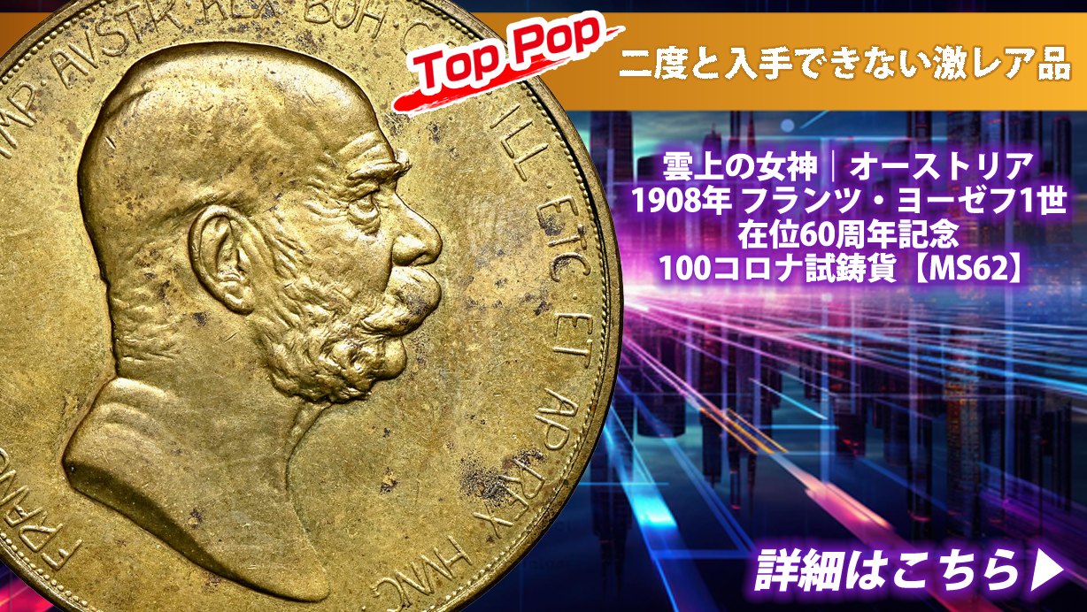 - ◆ 新コイン追加|1908年雲上の女神 100コロナ試鋳貨【MS62】